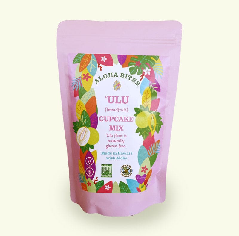 This cupcake mix made by Aloha Bites is a blend of ʻUlu flour with other gluten free, non-GMO, vegan flours. This mix makes a dozen regular size cupcakes or 24 mini cupcakes.