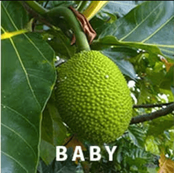 Breadfruit can be eaten at every development stage. As the fruit grows, each stage yields a different taste and texture profile that can be used for specific culinary purposes. Watch our video: ʻUlu Maturity Stages.