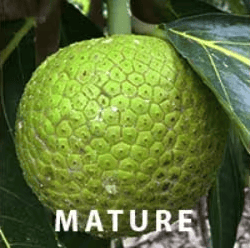 Mature– Larger but nearly as firm as baby ‘ulu, Mature fruit has a potato-like consistency and can be steamed, boiled, fried, baked, or cooked the traditional way: roasted directly in a fire or imu!