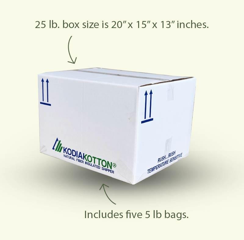 Packaging: Each case contains five 5-lb resealable zipper bags, totaling 25 lbs. Packaged in an eco-friendly insulated box.